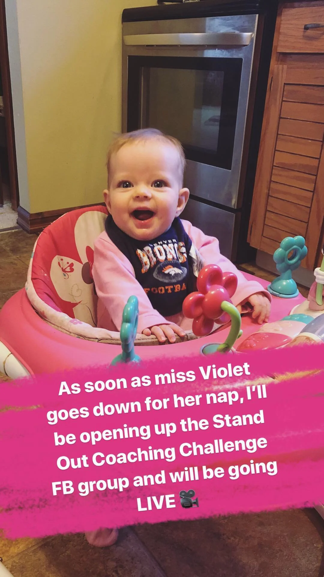 About 40 people joined my group for the challenge. Every day I showed up live, most of the time with Violet on my hip and I taught a different lesson. I created a workbook that was only available to them and the group was highly engaged. On the last day of the challenge I made sure to invite them all to my webinar the next day where I would pitch SOCA for the very first time.