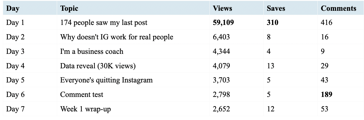 Last week, I posted on Instagram every single day. Seven posts. Same account. Same audience. Same effort.